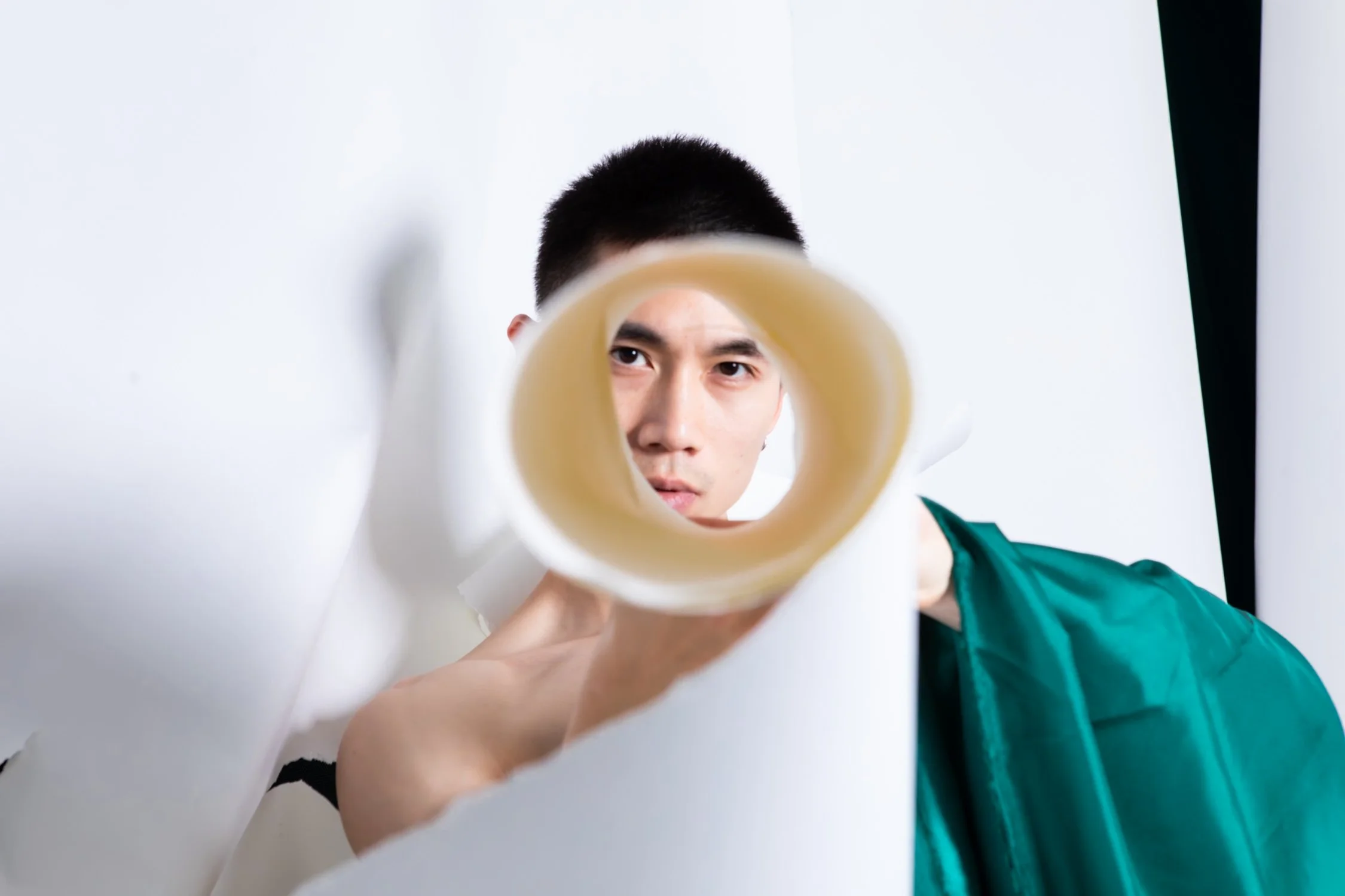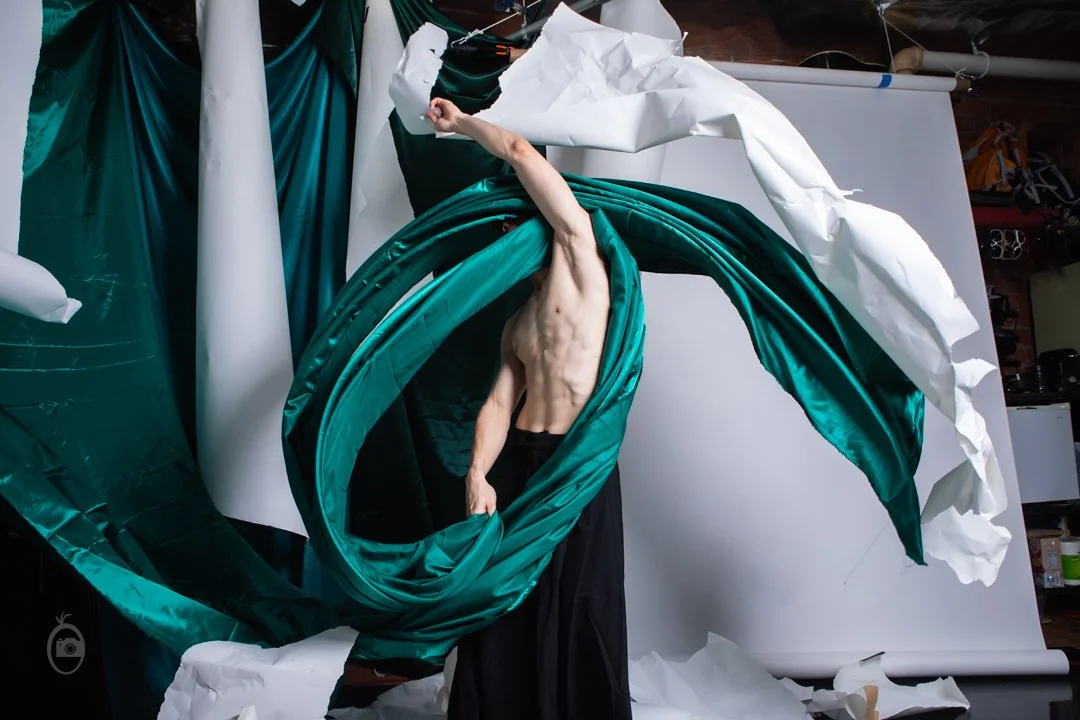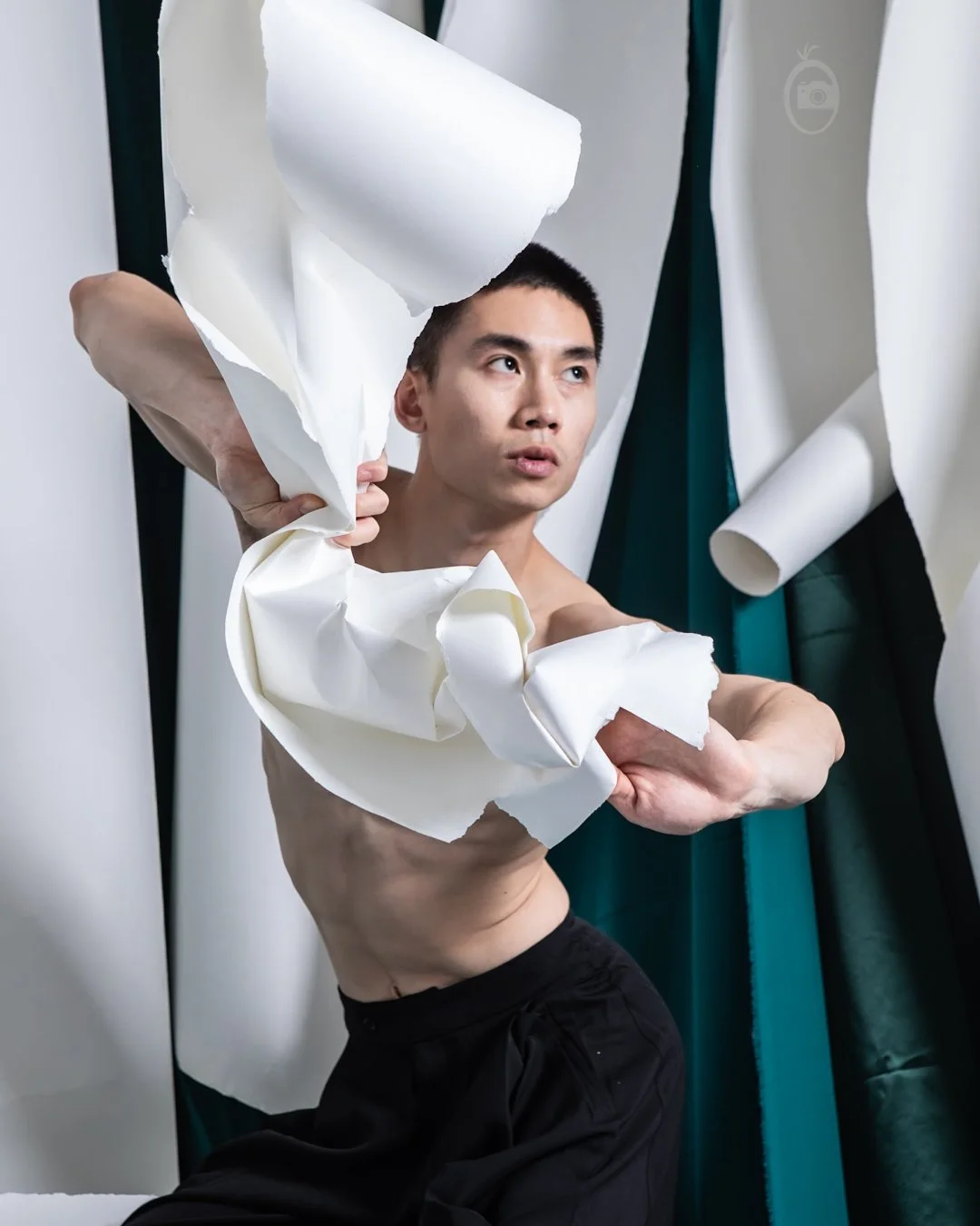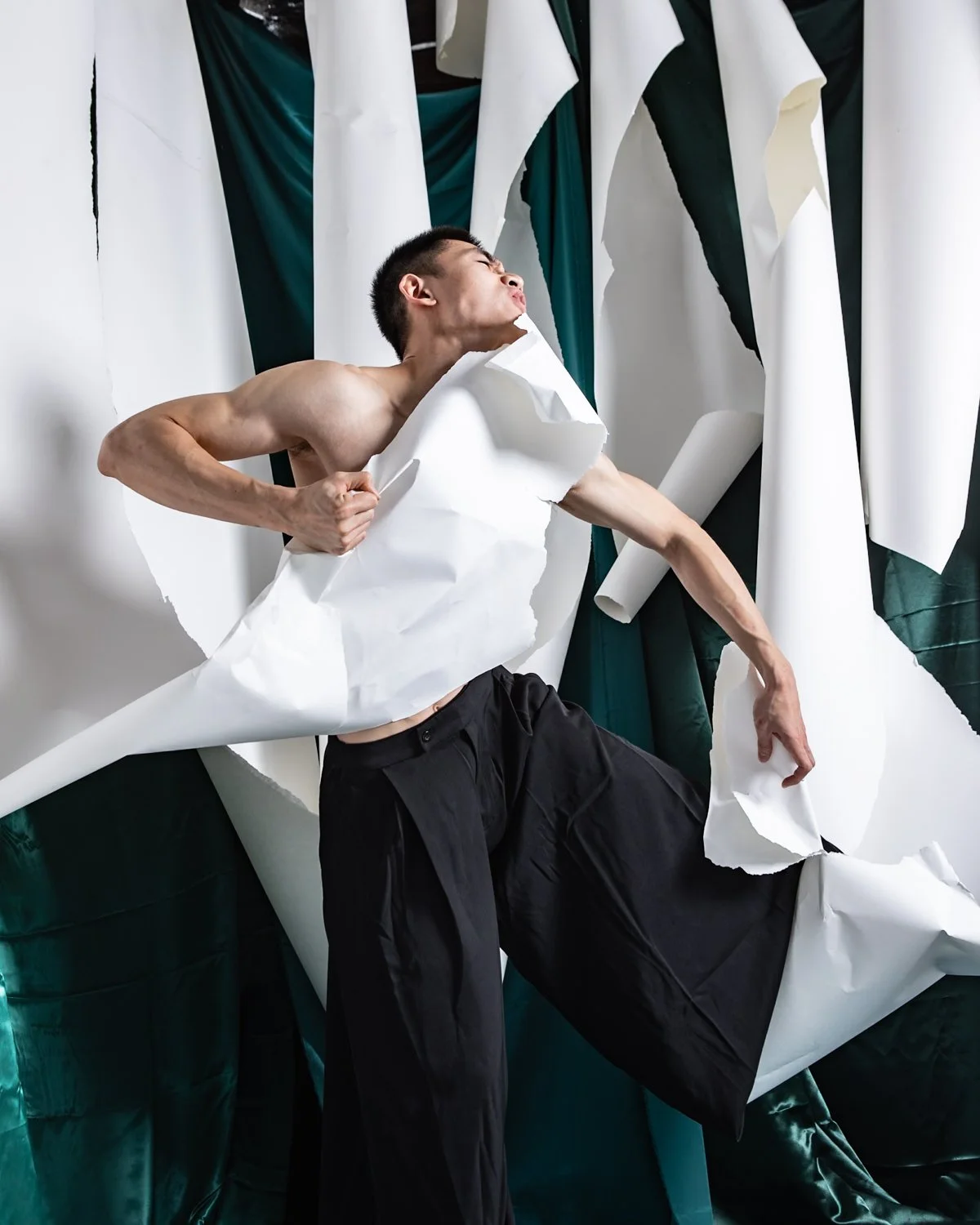 Some images from a photo shoot with dancer SonLam Nguyen. We had collaborated in the past and I knew that he would get really creative with this fabric and paper set.